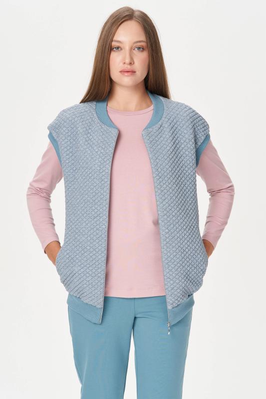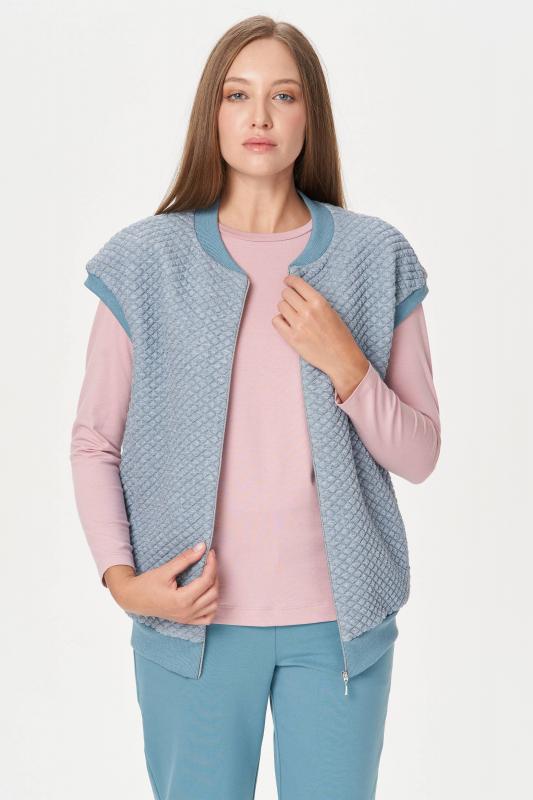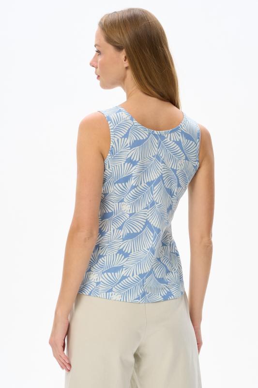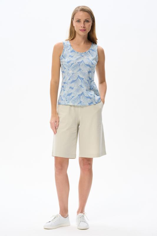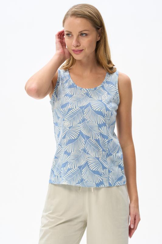 Майка из хлопкового трикотажного полотна. Круглый вырез горловины и проймы окантованы, рельефные швы. Рост модели на фото 178 см.