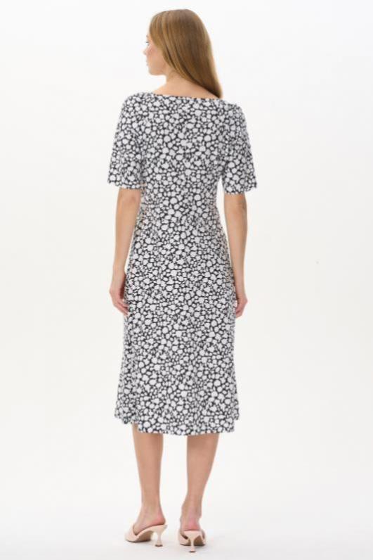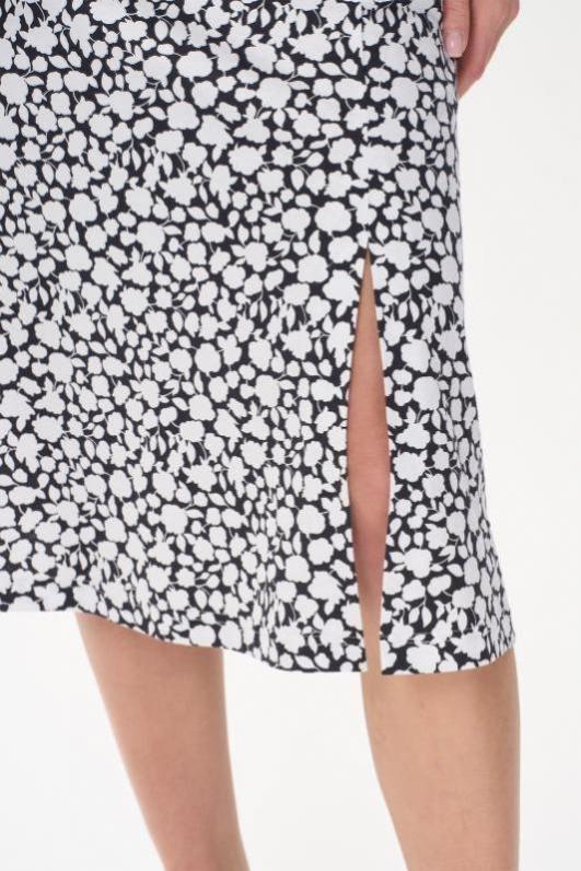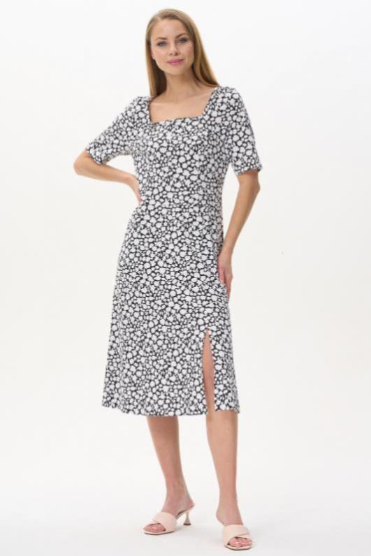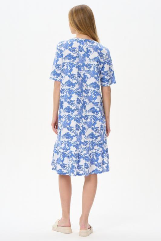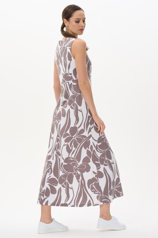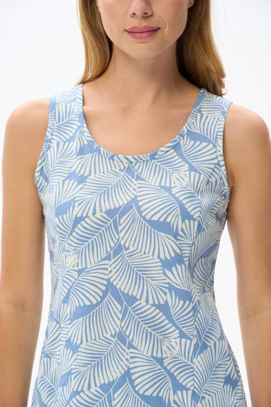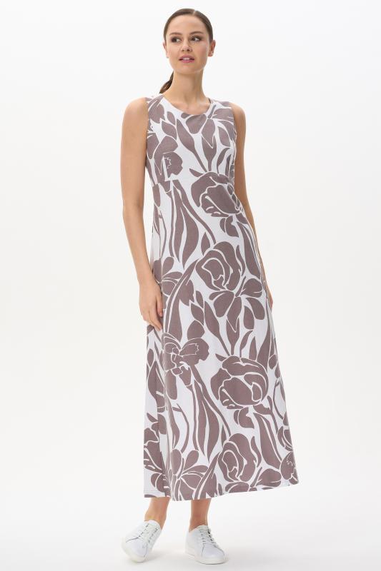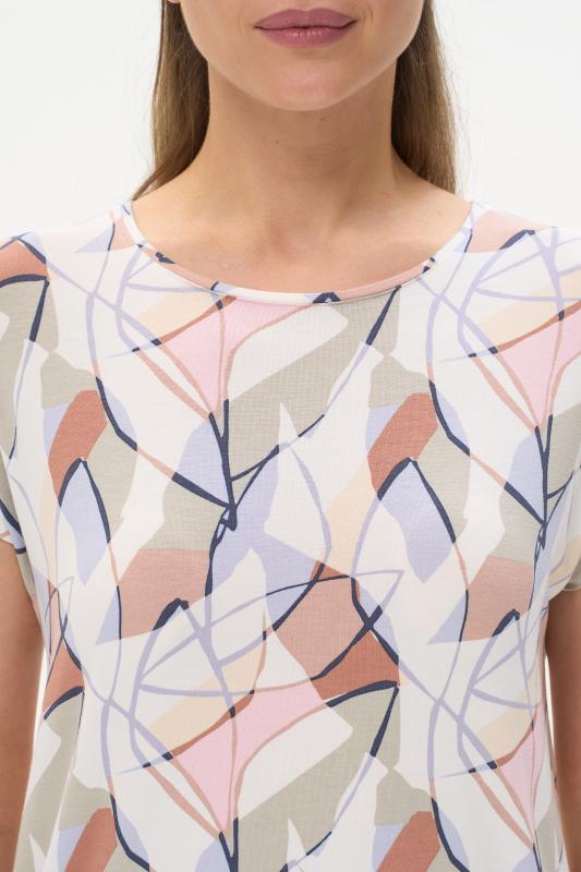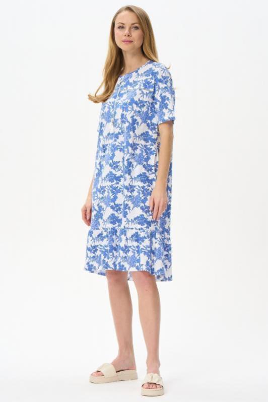Сорочка с принтом прямого силуэта из хлопкового трикотажного полотна. Округлый вырез горловины, цельнокроеные короткие рукава. Длина изделия ниже колена. Рост модели на фото 170.