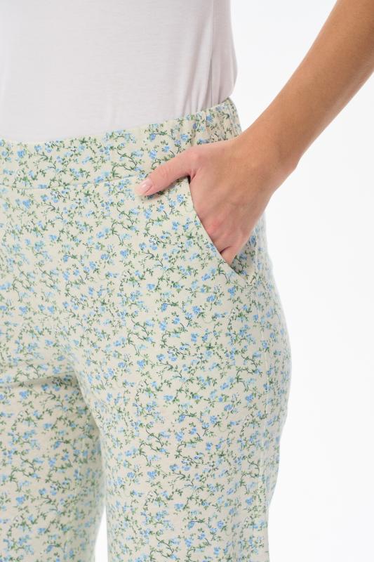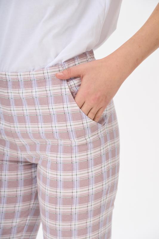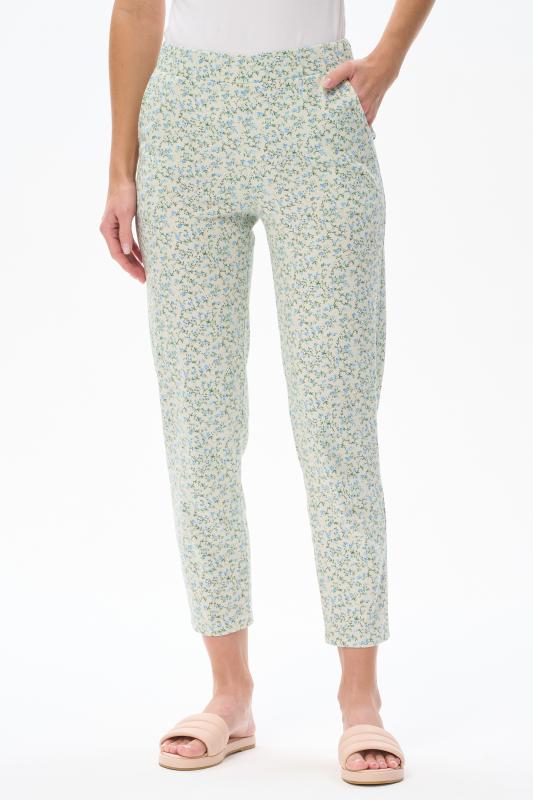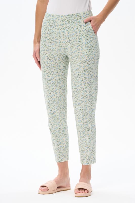 Универсальные брюки, длиной 78 из хлопкового полотна. Пояс с эластичной лентой, два фигурных боковых кармана. Длина по боковому шву (без учета пояса) в 44 размере 87см. Рост модели на фото 178 см.