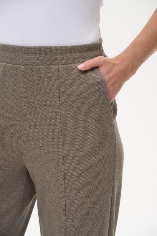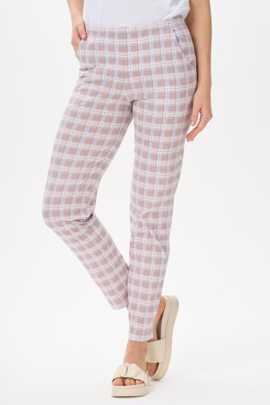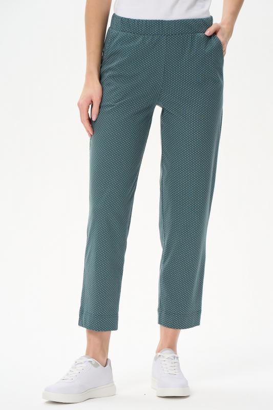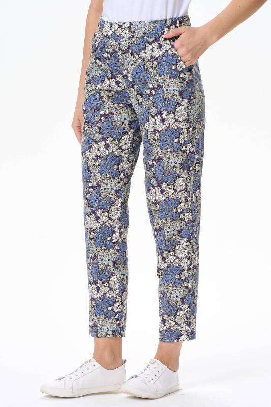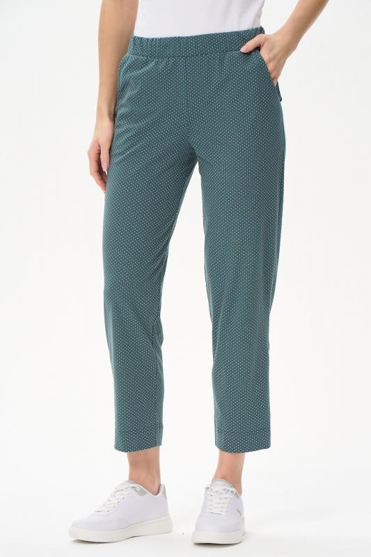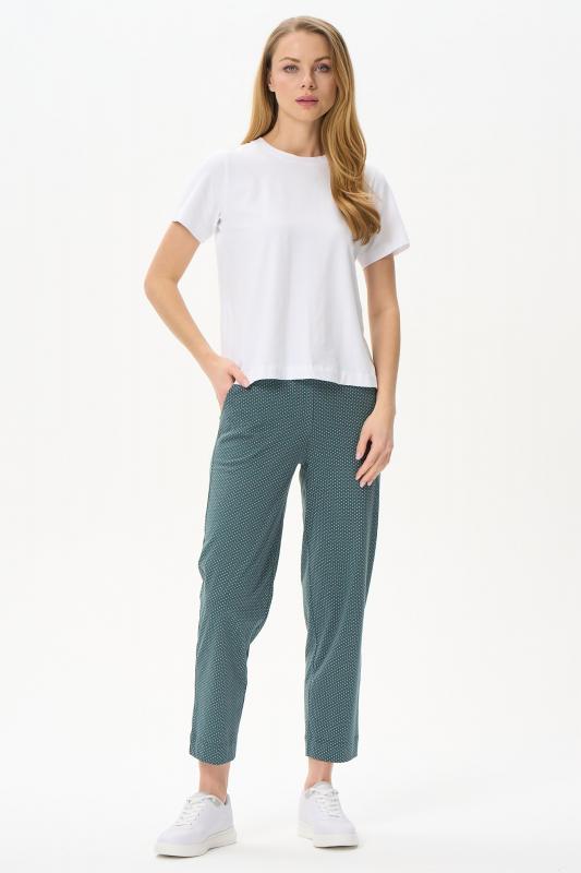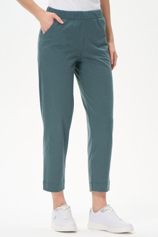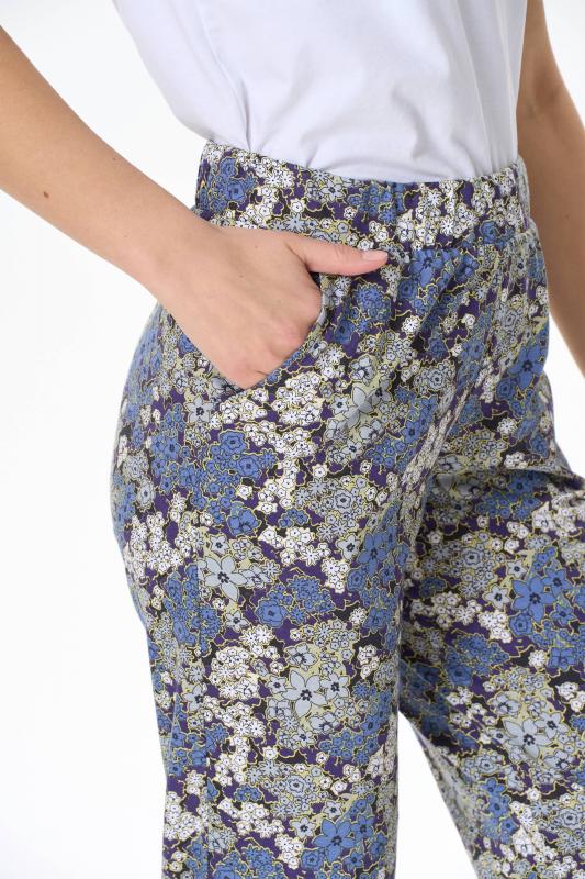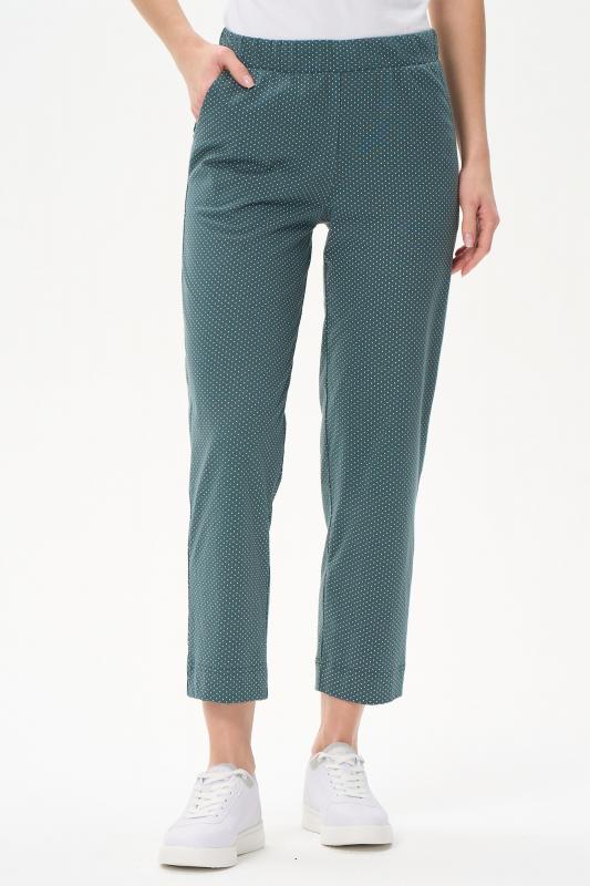 Универсальные брюки длиной 78 из хлопкового полотна. Пояс с эластичной лентой, два фигурных боковых кармана. Длина по боковому шву (без учета пояса) в 44 размере 87см. Рост модели на фото 178 см