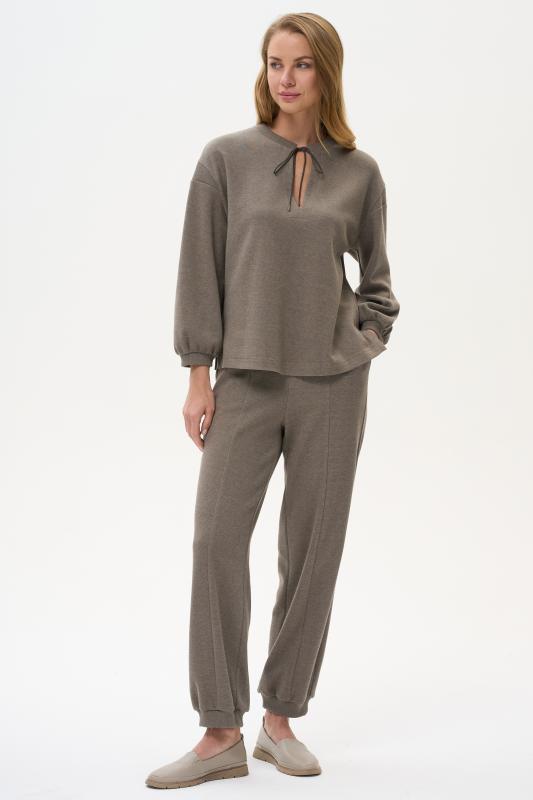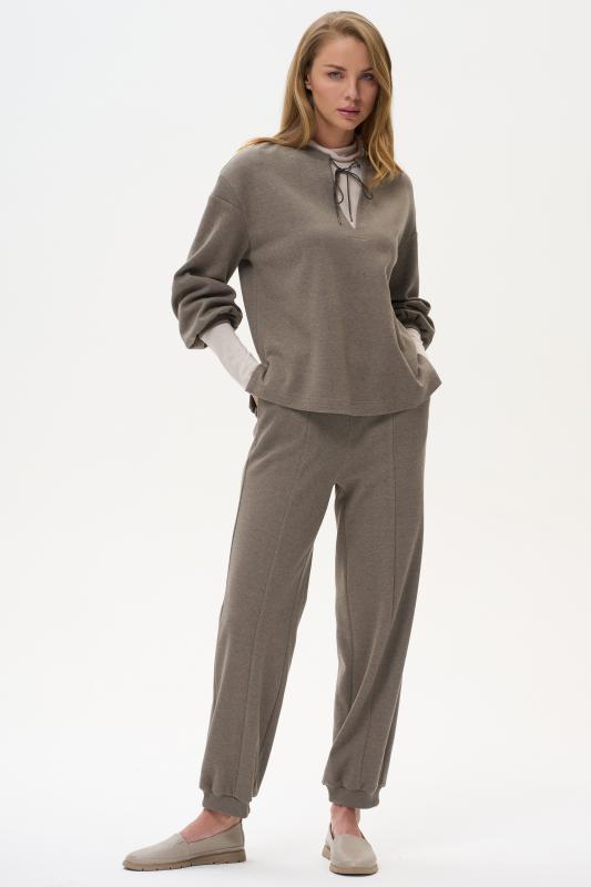 Длинные брюки из хлопкового трикотажного полотна с карманами. Пояс и цельнокроенные манжеты по низу брюк с эластичной тесьмой внутри. Рост модели на фото 177см.