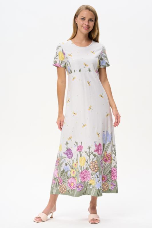Длинное платье прилегающего силуэта из трикотажного полотна качества ПЕ. Идеальная посадка по фигуре благодаря подрезу и рельфам. Круглый вырез горловины, короткие втачные рукава. Рост модели на фото 178см.