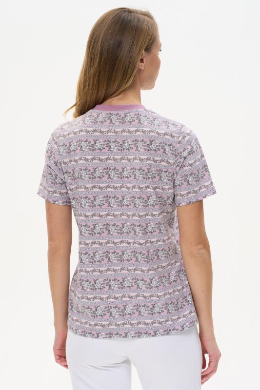 Футболка с принтом из хлопкового полотна качества пенье. Круглый вырез горловины, цельнокроеные короткие рукава с манжетами. Рост модели на фото 170