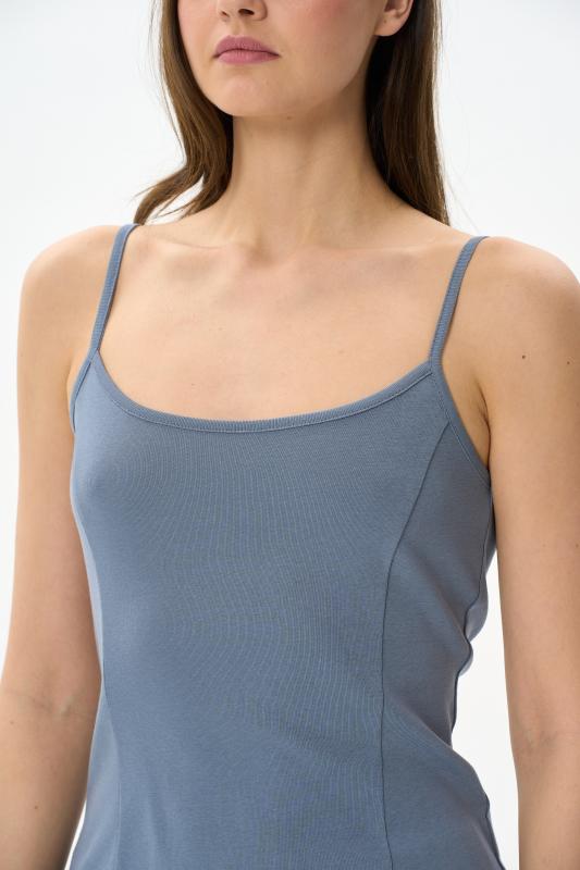 Майка на тонких бретелях из хлопкового трикотажного полотна - рибана. Рост модели на фото 178 см.