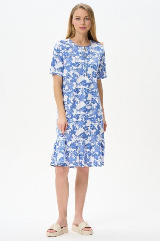 Платье расширенного силуэта из хлопкового трикотажного полотна. Круглый вырез горловины с завязками "