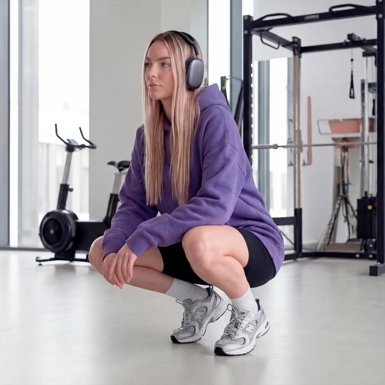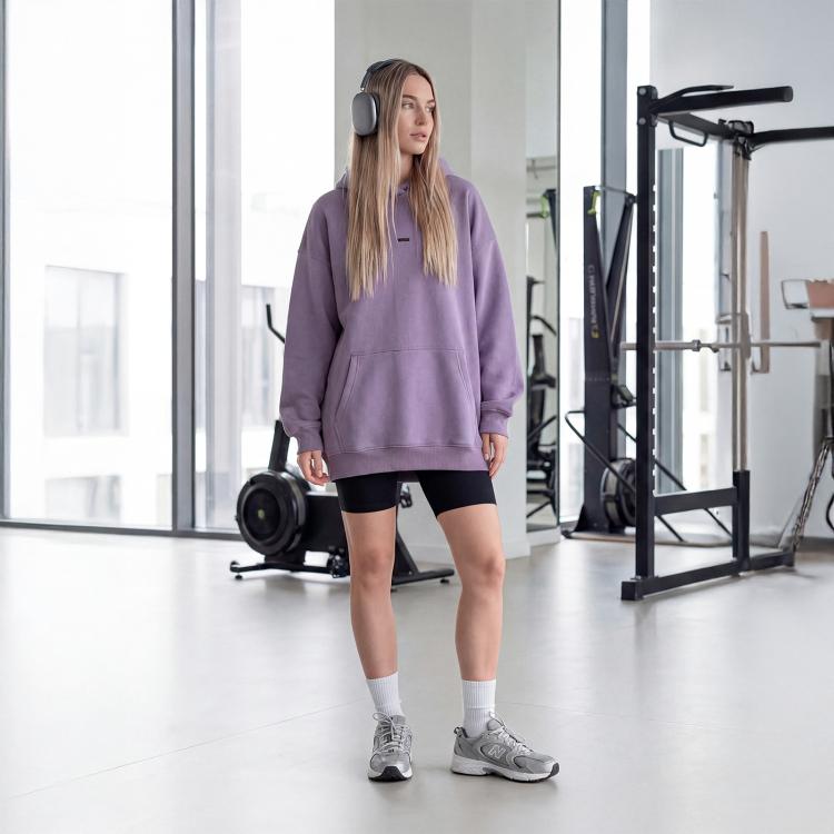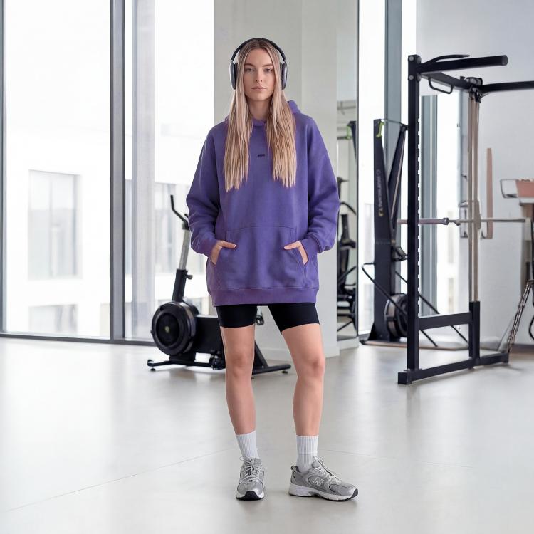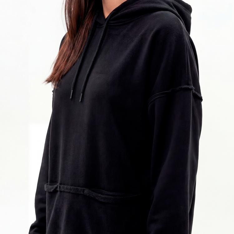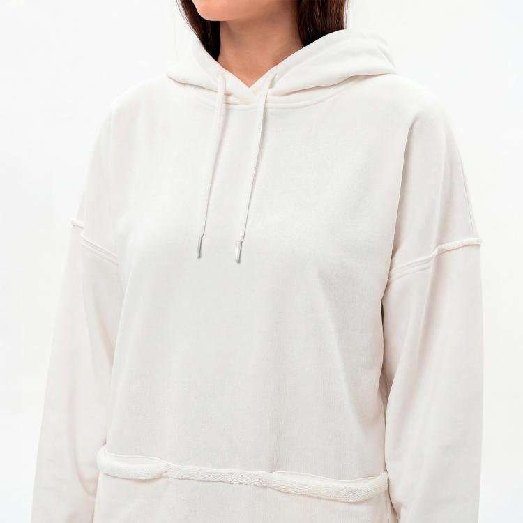 Женская худи свободного кроя с капюшоном и карманами в подрезе под грудью.Материал: