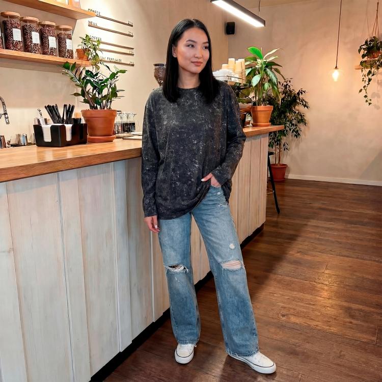 Женская футболка свободного кроя, круглый вырез горловины (принт "