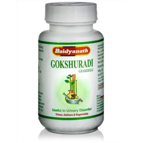 Этот аюрведический препарат обладает массой полезных качеств и применяется для решения многих проблем со здоровьем. Купить Гокшуради Гуггул имеет смысл, если есть проблемы с мочеполовой сферой – это помощь при сниженной потенции, а также применяется для увеличения количества семени. Gokshuradi Guggulu применяется при затруднённом или болезненном мочеиспускании, при камнях в почках или мочевом пузыре, при гематурии, применение этого препарата Аюрведы эффективно при хронических циститах и пиелонефритах. Кроме этого Гокшуради Гуггул применяется при лечении ревматизма, диабета, люмбаго и геморроя.