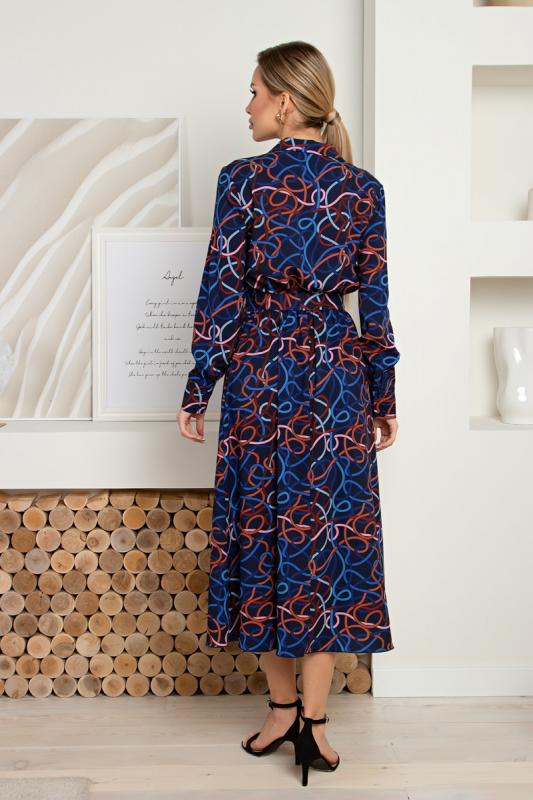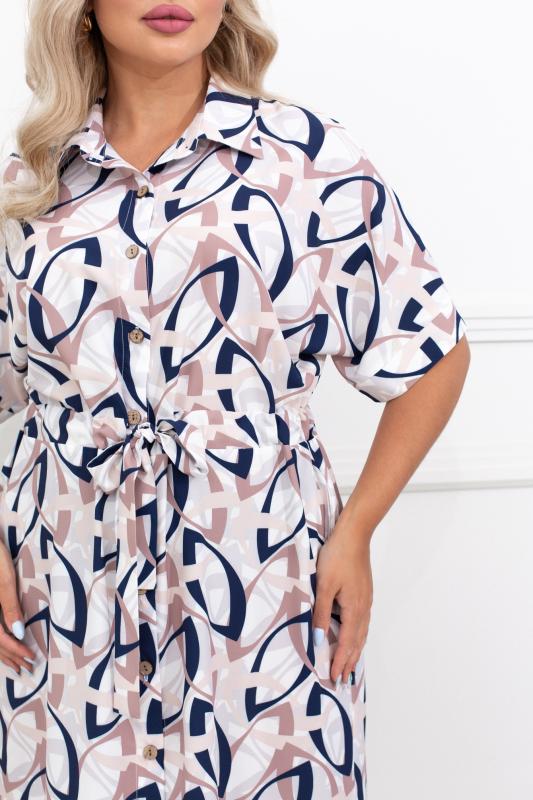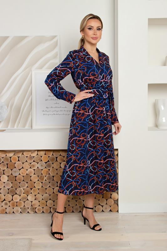 Комфортное платье А-силуэта из трикотажного полотна с оригинальным принтом. Втачные рукава ¾. Круглая горловина на внутренней обтачке. Модель без застежек. Низ платья ровный, без разрезов.