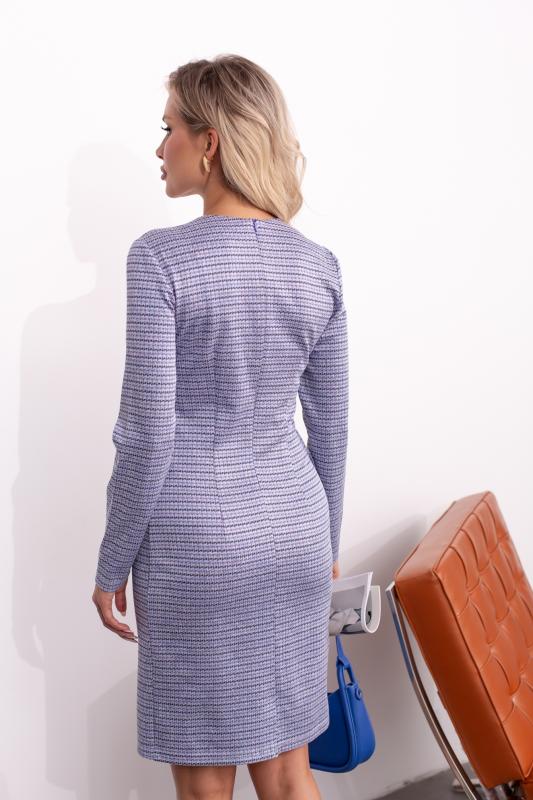 Женственное платье полуприлегающего силуэта из трикотажного полотна. Лиф переда на запах. V - образная горловина с отложным воротником пиджачного типа. Втачной рукав оканчивается притачным манжетам. Модель отрезная по линии талии присобрана на эластичную резинку. В боковых швах юбки функциональные карманы. Пояс из основного материала входит в комплект.