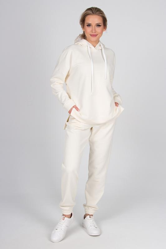 Брюки с комфортной посадкой на талии, которую обеспечивает пояс на резинке. Модель имеет функциональные карманы в боковых швах. Брючины оканчиваются широкими манжетами на резинке.