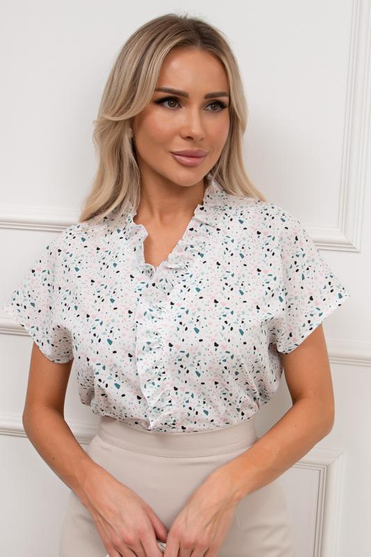 Комфортный джемпер полуприлегающего силуэта из трикотажного полотна. Длинный втачной рукав. Отложной воротник. Перед оформлен планкой с застежкой на петли и пуговицы. Низ ровный, без разрезов.