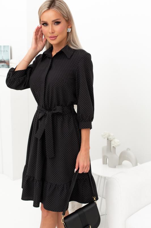 Элегантное платье прилегающего силуэта из трикотажного полотна с добавлением люрекса. Округлая горловина по переду, переходящая в V-образный вырез по спинке, на внутренней обтачке. Низ ровный, по переднему рельефу разрез.