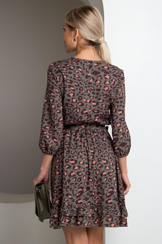 Праздничное платье прилегающего силуэта из плотного трикотажного полотна. Округлая горловина на внутренней обтачке. По спинке застежка на потайную молнию. Перед юбки оформлен баской, переходящей по диагонали в волан, через плечо на спинку. Низ ровный, сзади разрез.