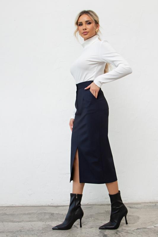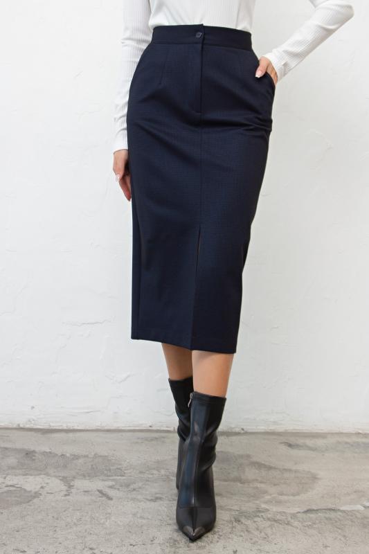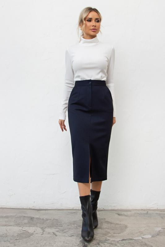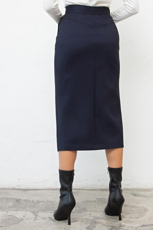 Офисная юбка-карандаш из плотного трикотажного полотна. Верх на широкой резинке, обеспечивающей комфортную посадку на талии. В среднем шве спинки расположена потайная застежка на молнию. Модель без подклада. Низ ровный, сзади шлица.