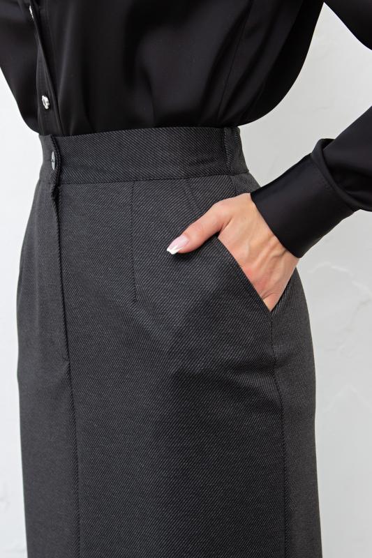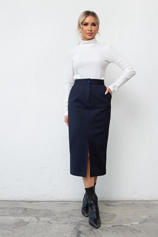 Юбка - карандаш из плотной трикотажной ткани. Верх дополнен втачным поясом по спинке на резинке. По переду застежка - гульфик. По бокам выполнены функциональные карманы с отрезным бочком. Низ ровный, спереди разрез. Отличная основа для создания образа. Юбка представлена с водолазкой №24 Рекомендуемая стирка при t не более 30°. Длина изделия: 74 см Рост фотомодели: 168 см
