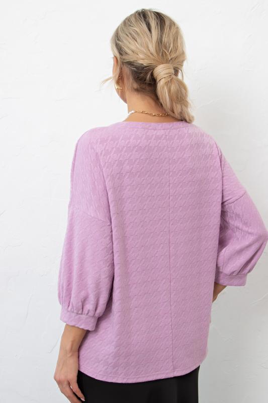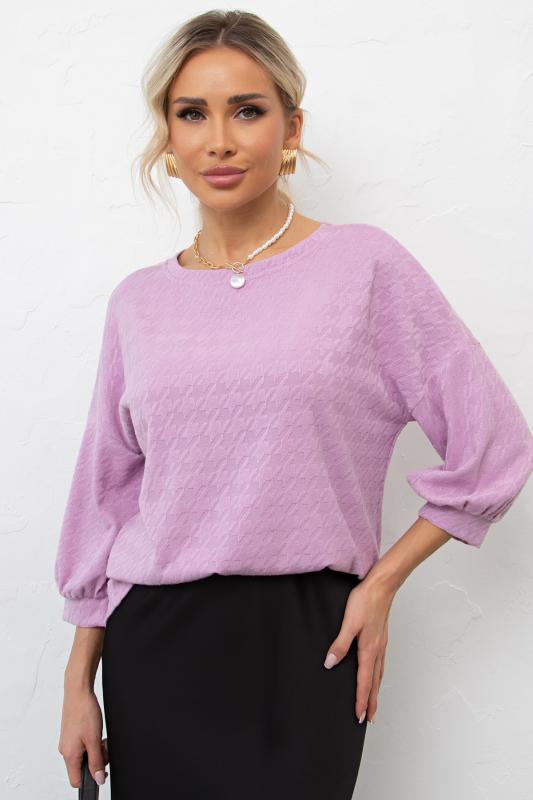 Комфортный джемпер свободного кроя из трикотажного полотна. Ворот оформлен округлой горловиной. Втачной рукав со спущенным плечом длинной 3-4 присборен на манжету. Низ ровный, без разрезов.