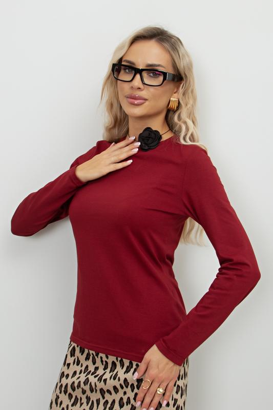 Лонгслив полуприлегающего силуэта из однотонного трикотажного полотна. Округлый вырез горловины на внешней обтачке. Длинные втачные рукава. Низ ровный, без разрезов. Идеальный вариант на каждый день.