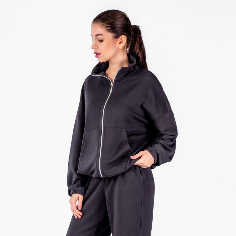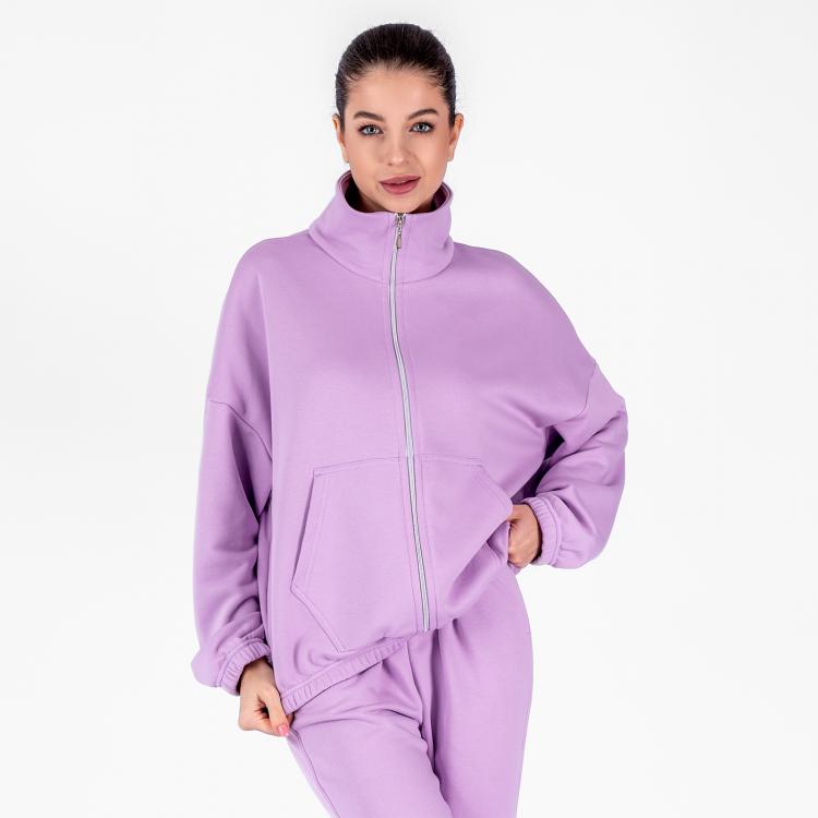 Женская куртка-толстовка на молнии, с воротником-стойкой и накладным карманом.Материал: