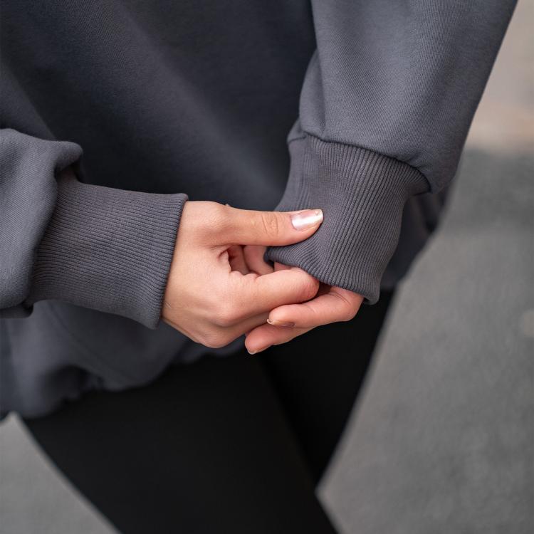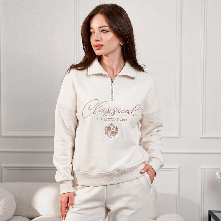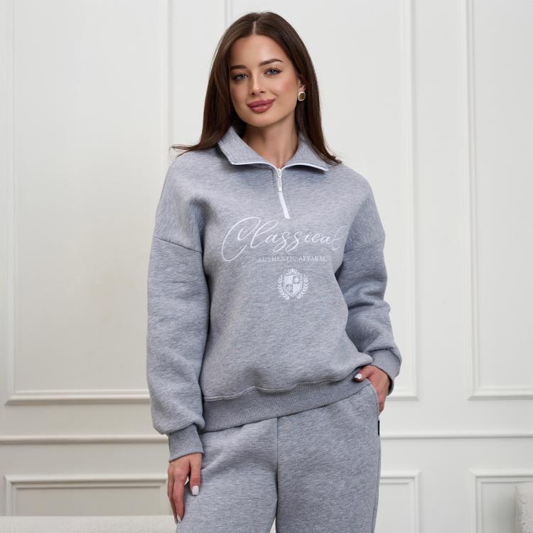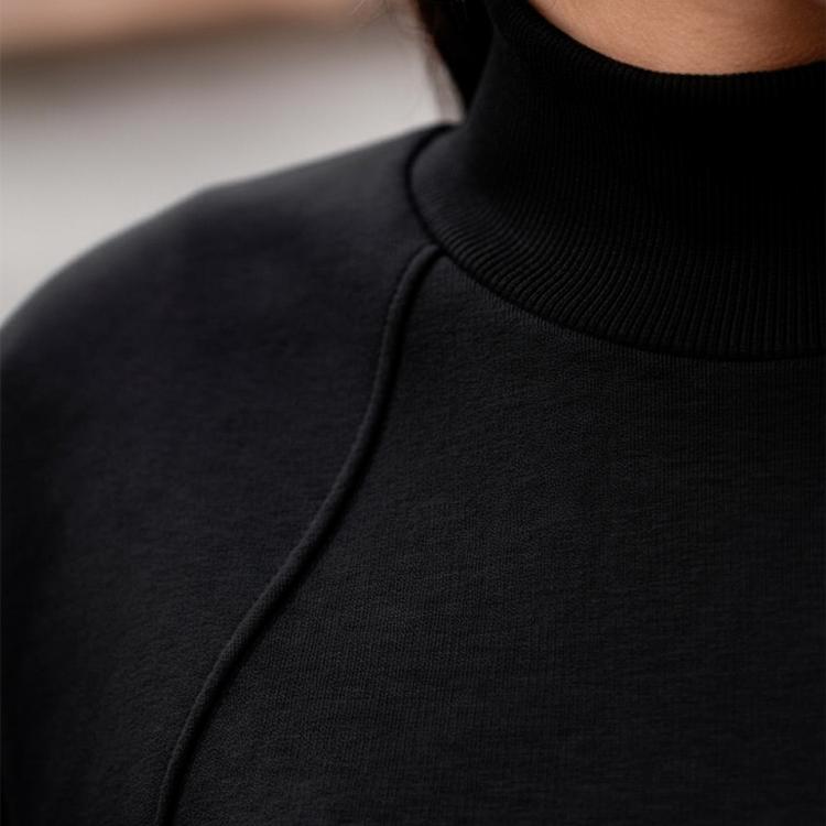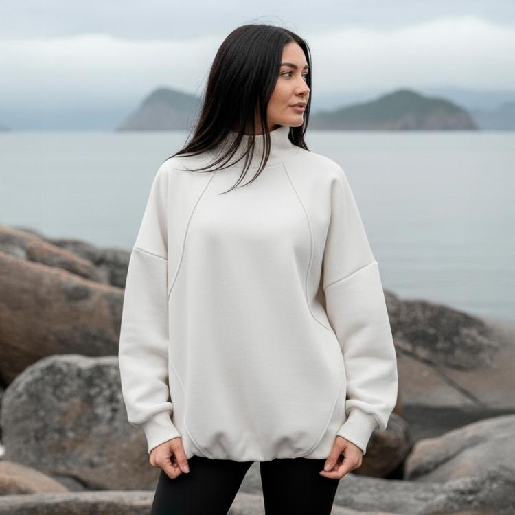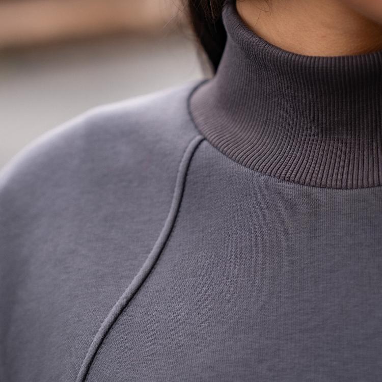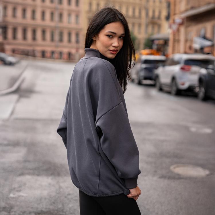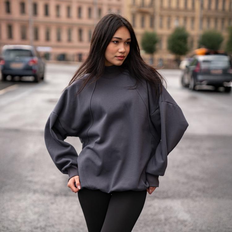Женский свитшот с резными линиями, высоким воротом-стойкой и кулиской по низу.Материал: