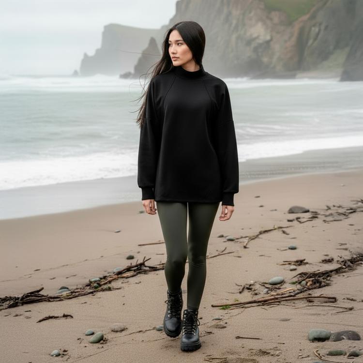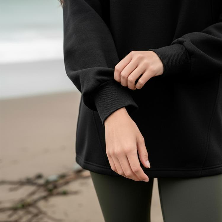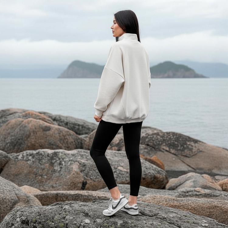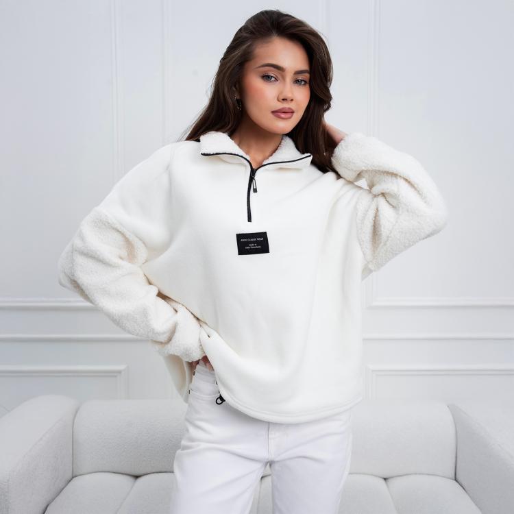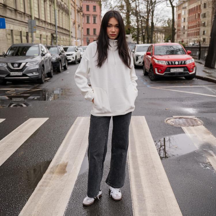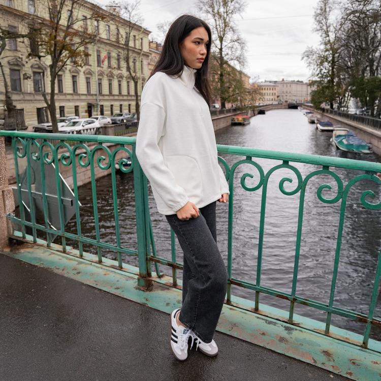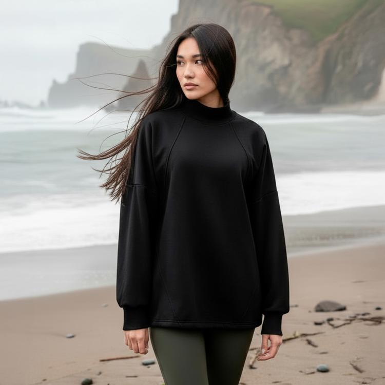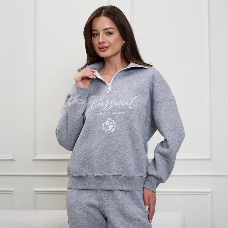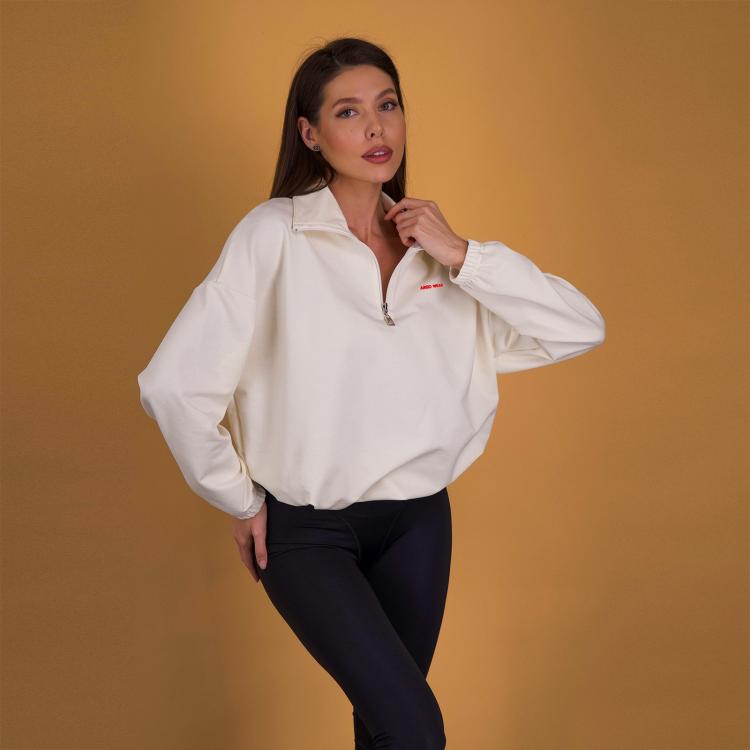 Женский свитшот с резными линиями, высоким воротом-стойкой и кулиской по низу.Материал:
