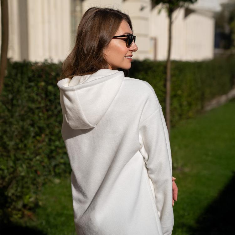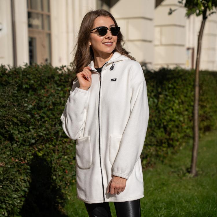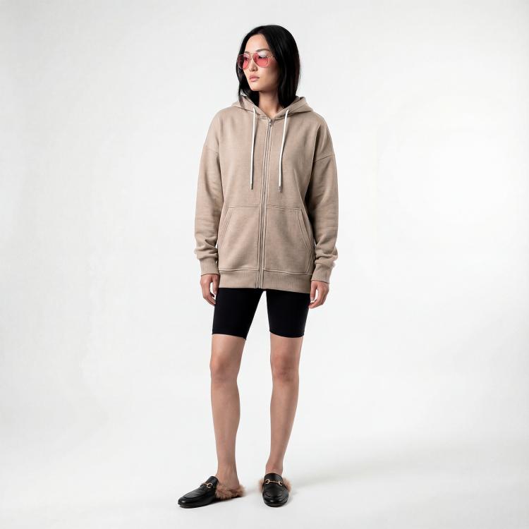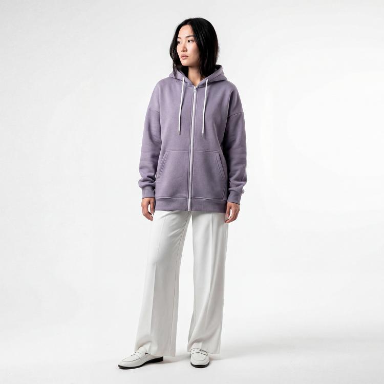 Женская удлиненная толстовка на молнии, с капюшоном и накладными карманами.Материал: