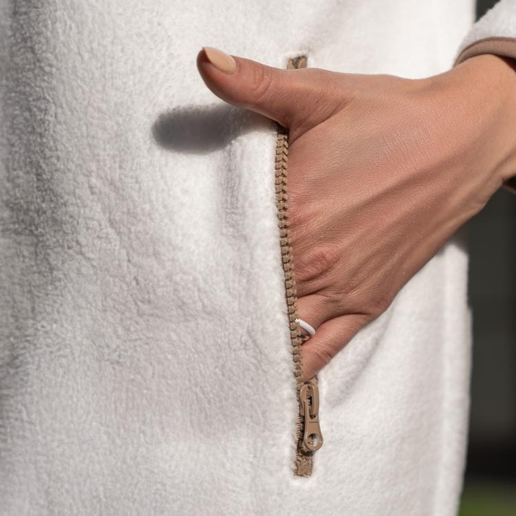 из микроволокон полиэстера. Изделия из этого полотна очень прочные, удобные и прекрасно держат тепло. Несмотря на легкость ткань гораздо прочнее натуральных аналогов, она эластична, долго сохраняет форму и не требует специального ухода. Одежда из такого материала изолируют тело не только от холода, но и от чрезмерного тепла.ВНИМАНИЕ! Мы рекомендуем предварительную стирку изделия перед использованием на деликатном режиме