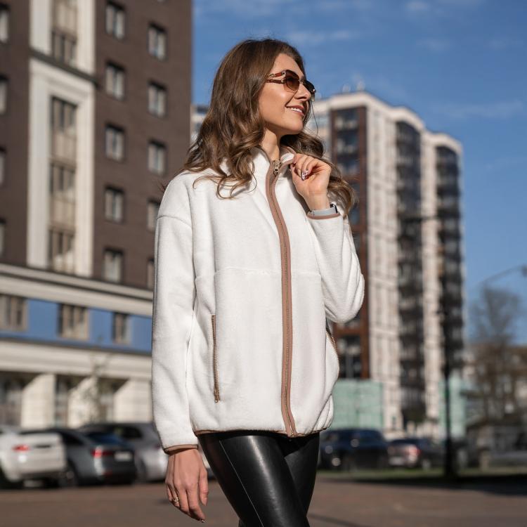Женская куртка-толстовка на молнии, с воротником-стойкой и накладным карманом.Материал: