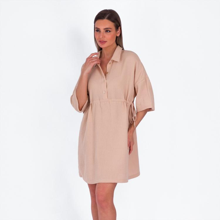 Женское платье-рубашка на кулиске, со спущенным рукавом, и застежкой до талии на пуговицы.Материал: