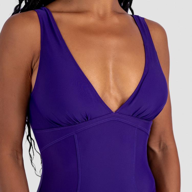 Купальник слитный со сборкой по линии груди, рельефными линиями, застежкой на спинке и съемными чашечками.Материал: