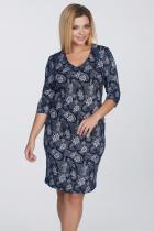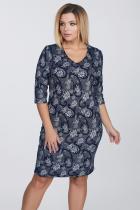 Комфортное платье полуприлегающего силуэта из мягкого трикотажного полотна с цветочным принтом. Втачные рукава ¾ подчеркивают изящество кистей рук. Горловина на внутренней обтачке оформлена V-образным вырезом. Низ ровный, без разрезов. Платье станет прекрасным дополнением к повседневному гардеробу.