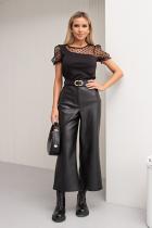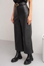 Стильные кюлоты прямого силуэта из эко - кожи на замшевой основе. Втачной пояс переходит в застежку-гульфик на молнию и пуговицу.