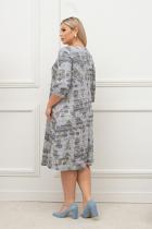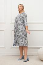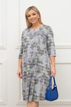 Элегантное платье А-образного силуэта из трикотажного полотна с оригинальным принтом. Втачные рукава ¾. Круглая горловина на внутренней обтачке. В заднем шве спинки – застежка на потайную молнию. Низ ровный, без разрезов.