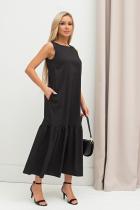 Летнее платье А - силуэта. Округлая горловина на внутренней обтачке. По спинке застежка на потайную молнию. В боковых швах функциональные карманы. Низ оформлен притачным воланом.