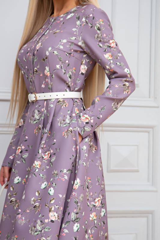 Изящное миди платье из плательно - костюмной ткани Март. Длинный втачной рукав. Округлая горловина на внутренней обтачке, по переду планка с застежкой на петли и пуговицы. Модель отрезная по линии талии. По юбке заложены встречные складки. По боковым функциональные карманы. По спинке застёжка на потайную молнию. Низ ровный, без разрезов. Пояс из основной ткани в комплекте.