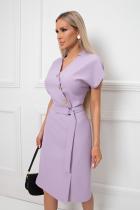 Элегантное платье прямого кроя отлично впишется в ежедневный гардероб. Короткий цельнокроеный рукав, V - образная горловина переходящая в фиксированный запах на груди. По переду юбки выполнена шлица. Пояс из основного материала в комплекте.