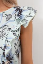 Женственная блузка прямого кроя из легкой ткани Ниагара. Округлая горловина на внутренней обтачке. Модель без рукавов, дополнена втачными воланами. Спинка присборена на эластичную резинку. Низ ровный, без разрезов.