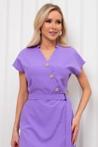 Элегантное платье прямого кроя отлично впишется в ежедневный гардероб. Короткий цельнокроеный рукав, V - образная горловина переходящая в фиксированный запах на груди. По переду юбки выполнена шлица. Пояс из основного материала в комплекте.