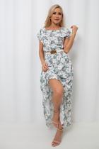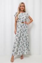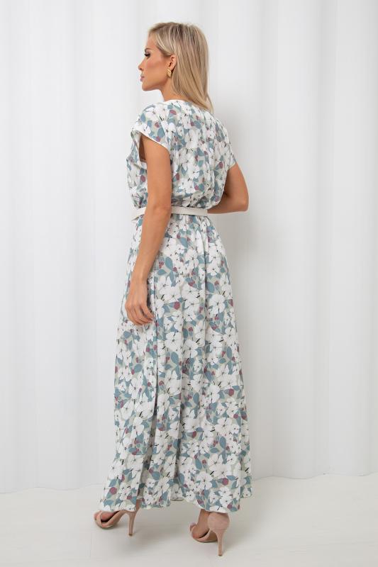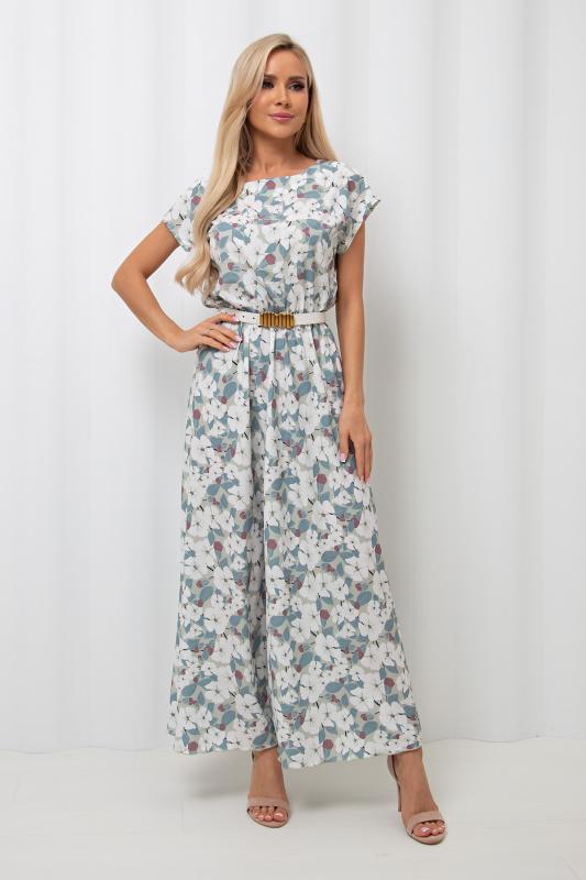 Воздушное платье полуприлегающего силуэта с цветочным принтом. Короткие спущенные рукава. Горловина на внутренней обтачке оформлена "