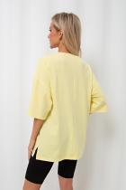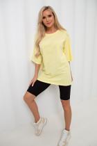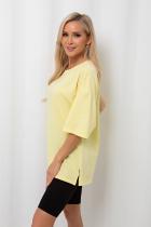 Футболка прямого силуэта из однотонного трикотажного полотна свободного кроя. Круглый вырез горловины. Короткие втачные рукава. Низ ровный, по бокам разрезы. Идеальный вариант на каждый день.
