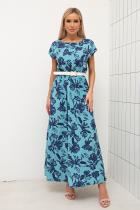 Воздушное платье полуприлегающего силуэта с цветочным принтом. Короткие спущенные рукава. Горловина на внутренней обтачке оформлена "