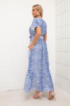 Легкое летнее платье прямого кроя. V - образная горловина на внутренней обтачке. Короткий цельнокроеный рукав. В боковых швах функциональные карманы. Низ оформлен притачным воланом. Пояс из основного материала в комплекте.