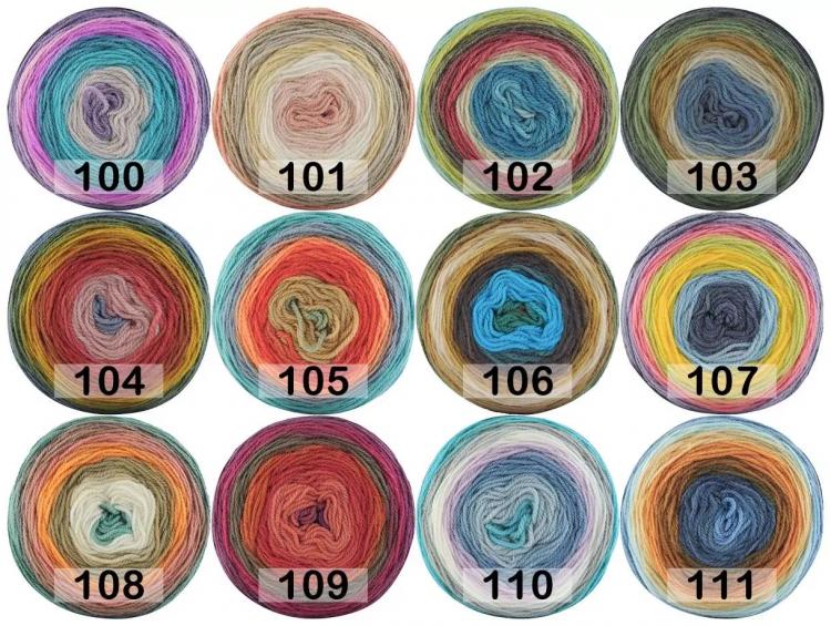 Кейк вул папатия невероятно красочная пряжа, имеет совершенно волшебный цветовой градиент. Благодаря длине мотка, Papatya Cake Wool идеально подходит для изготовления шали. Многие узоры подходят для работы с этой пряжей. Принт разноцвеный и очень длинный. Рекомендуемые спицы 4-4.5, крючок 3 мм. В полотне 10x10cm = 18 рядов x 27 петель