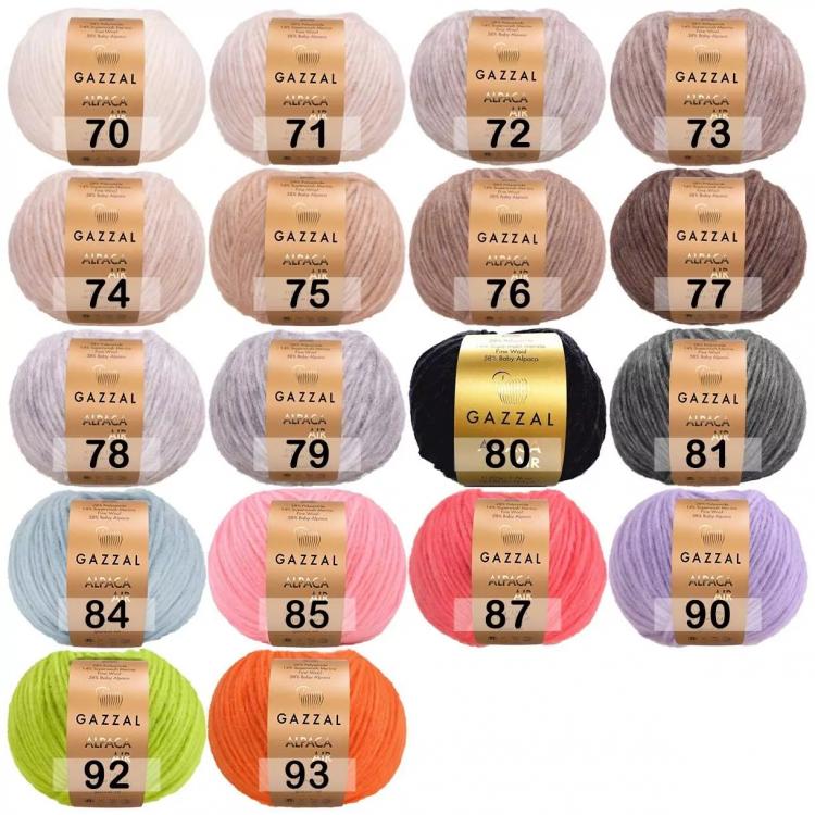 Газзал альпака эйр. Рекомендуемый размер спиц №2.5-4, крючка №1-3