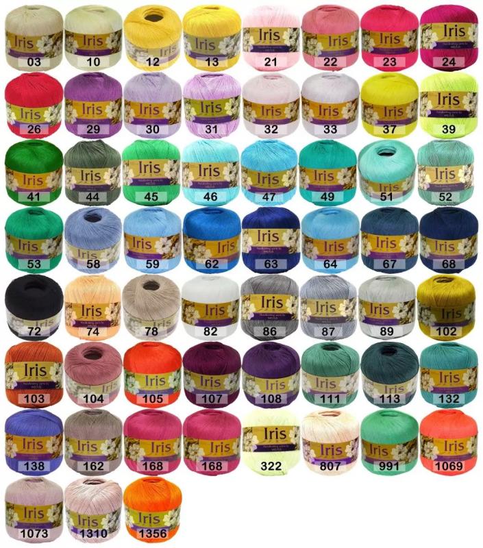Пряжа Ирис. Пряжа подойдет для вязания различных мотивов крючком, купальников, летних топов, воротников, нитки особенно подходят для вязания детям. Подходящая крутка для фриволите. Пряжа очень износостойкая. Изделие будет держать форму, не деформируется, не линяет. Хранить изделия лучше в свернутом виде, т.к. на плечиках слегка тянет вниз. Очень приятно к телу, особенно в жаркую погоду, слегка холодит, как лен. Рекомендуемый крючок 1,5-2.
