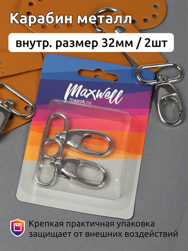 Карабин металл арт.MX.5520 внутр. размер 32мм цв.никель уп.2шт