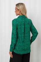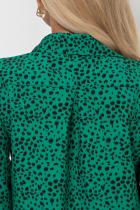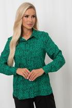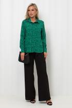Стильная рубашка прямого силуэта с оригинальным принтом. Длинные втачные рукава оканчиваются манжетами с застежкой на пуговицу. Горловина оформлена классическим воротником на стойке, переходящим в планку с застежкой на пуговицы. Спинка дополнена кокеткой со складкой. Низ фигурный, без разрезов. Рубашка отлично смотрится как заправленная, так и на выпуск.