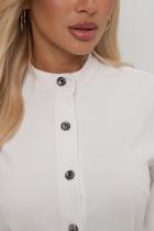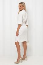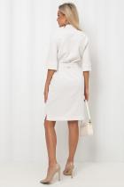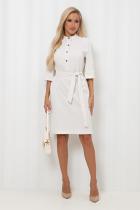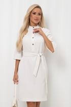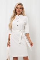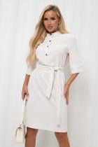Стильное платье прямого силуэта придаст вашему образу женственности и шарма. Втачной рукав длинной 3-4 со спущенным плечом оканчивается притачной манжетой. Горловина оформлена воротником - стойка, переходящей в планку с застежкой на петли и пуговицы. Спинка дополнена кокеткой. Низ ровный, по бокам не большие разрезы. Тканевый пояс дополнительно подчеркнет линию талии.