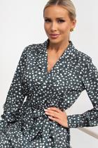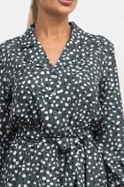 Красивое платье полуприлегающего силуэта. Втачные длинные рукава оканчиваются притачной манжетой. Горловина оформлена английским отложным воротником. По переду выполнена планка с застежкой на пуговицы. Платье отрезное по линии талии, присобрана на эластичную резинку. Пояс из основного материала входит в комплект. Низ ровный, без разрезов.