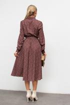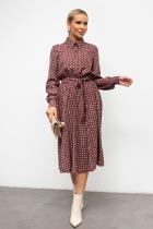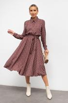 Красивое платье приталенного силуэта из легкой ткани - ниагара. Горловина оформлена отложным воротником на стойке. По переду выполнена планка с застежкой на петли и пуговицы. Длинный втачной рукав, оканчивается притачной манжетой. В боковых швах функциональные карманы. Модель отрезная по линии талии, присобрана на эластичную резинку. Тканевый пояс дополнительно акцентирует талию. Модель прекрасно дополнит ваш гардероб.